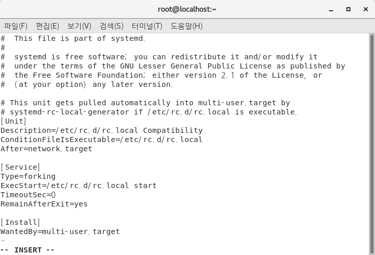 4. "/usr/lib/systemd/system/rc-local.service" 파일에 아래와 같이 기입합니다.