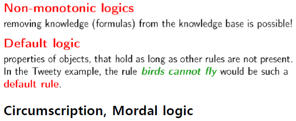 => logic은 monotonic하므로 새로운 지식이 들어와도 logic을 변경할 수 없다.