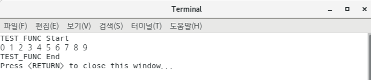 24번 째 줄 이후부터는 함수 포인터를 사용하여 동적 라이브러리의 TEST_FUNC() 함수에 접근하였습니다.