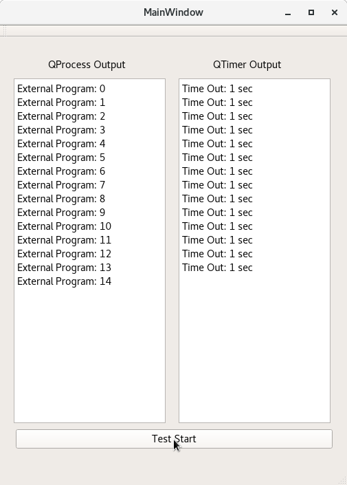 이번 예제는 메인 쓰레드에서 무한 루프를 돌고 있을 경우 QProcess 및 QTimer의 Signal / Slot 이벤트 발생 시에 프로그램 동작을 보겠습니다.