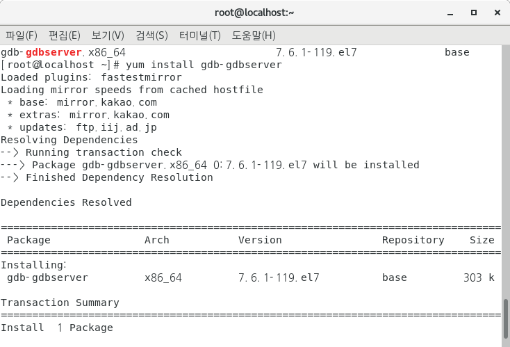 "gdbserver : not found 오류 발생시" 아래와 같이 Target System에 gdb-gdbserver를 설치합니다.