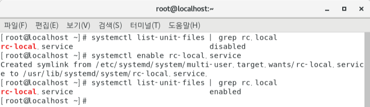 3. "rc-local.service"가 활성화 되어있지 않다면 아래의 명령어로 서비스를 활성화 시킵니다.