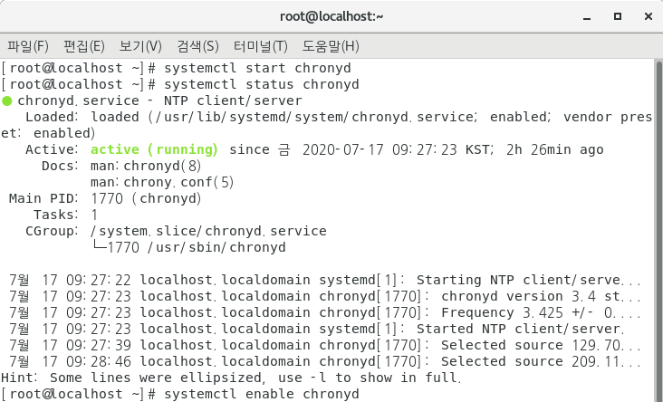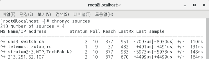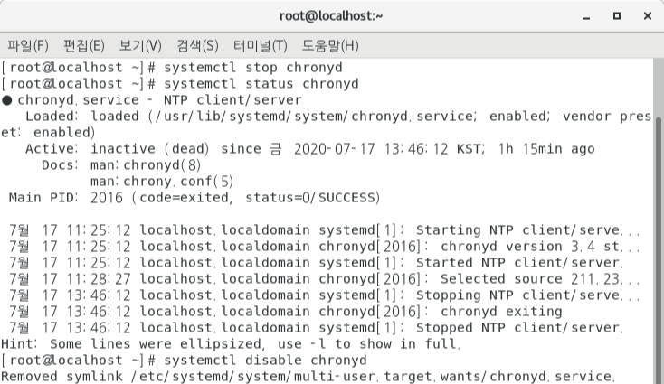 => ntpd 와 chronyd는 동시에 실행될 수 없습니다.