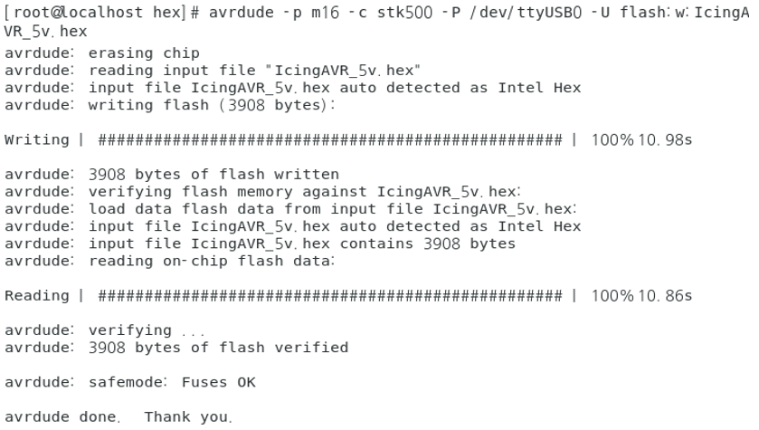 | # avrdude -p m16 -c stk500 -P /dev/ttyUSB0 -U flash:w:IcingAVR_5v.hex |