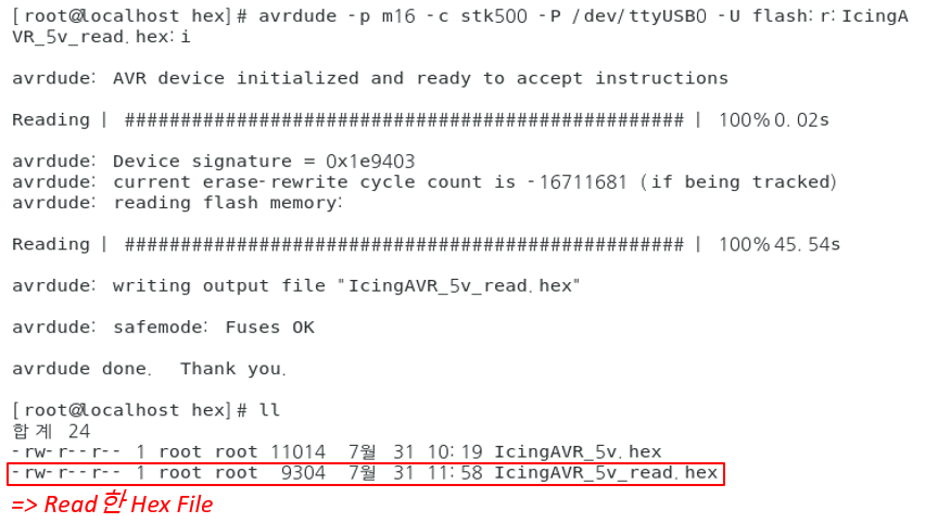 Atmega에 Hex File을 Read하는 Command 입니다.
