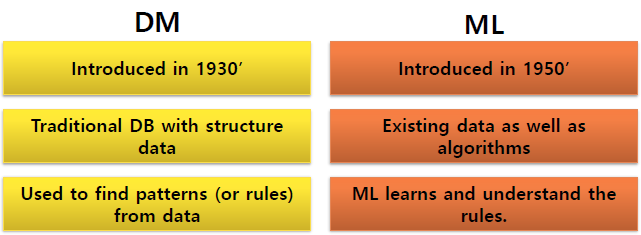 - 대규모로 저장된 데이터 안에서 체계적이고 자동적으로 통계적 규칙이나 패턴을 찾아 내는 것