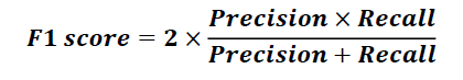 : F1 score는 precision과 recall을 조합하여 하나의 통계치를 반환합니다. 여기서 일반적인 평균이 아닌 조화 평균을 계산하였는데,