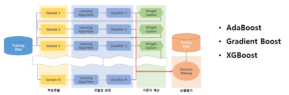 4. gradient boosting or XGBoost 이 가장 대표적인 예