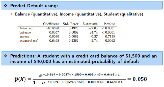 => balance와 student 값이 있을 경우 income 정보를 굳이 사용할 필요는 없다. P-value가 크기 때문이다.
