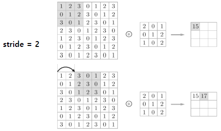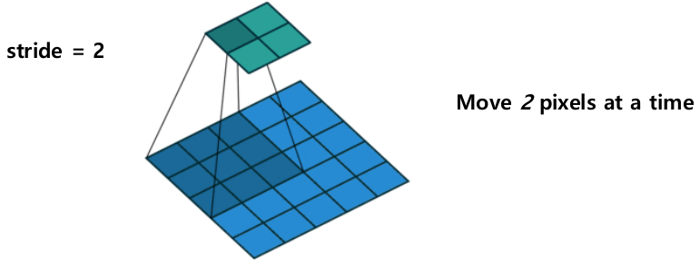: 스트라이드는 입력데이터에 필터를 적용할 때 이동할 간격을 조절하는 것, 즉 필터가 이동할 간격을 말합니다.