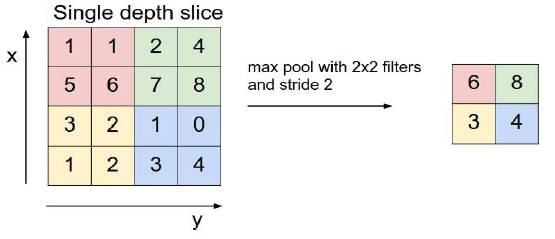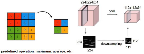 : pooling 이란, downsampling을 한다는 뜻으로 Max pooling의 경우 가장 큰 값만 다음 layer로 넘깁니다.