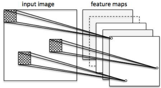 input image로 부터 filter size를 정한 후 feature maps에 hidden node를 만듭니다.