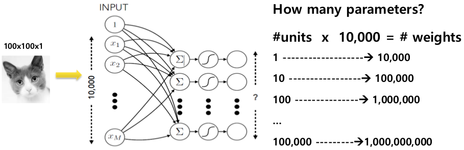 : 전통적인 Neural network는 학습해야 할 parameter가 너무 많아 차원이 높은 데이터에 적합하지 않습니다.